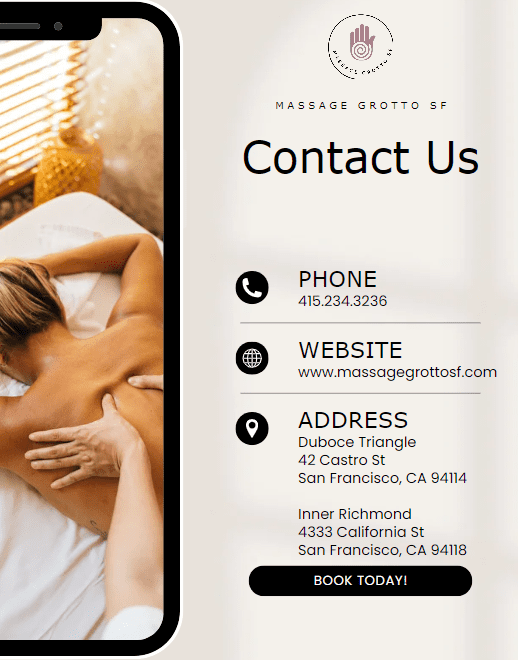 Booking your Wellness Wednesday session is easy! Simply visit our website at www.massagegrottosf.com or call/text us at 415.234.3236 to schedule your appointment.