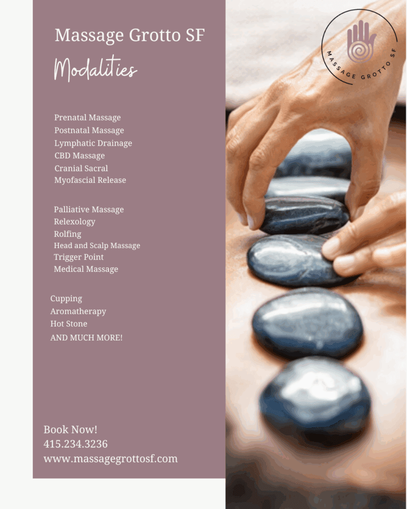 #MassageGrottoSF #MassageTherapy #WellnessJourney #RelaxationGoals #DeepTissueMassage #PrenatalMassage #SanFranciscoMassage #FeelBetterLiveBetter