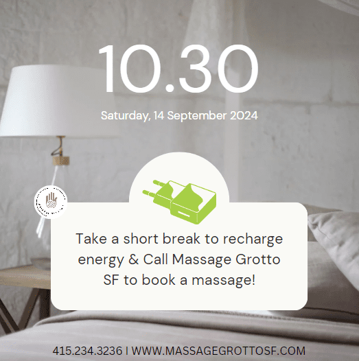 Ready to unwind and recharge? Call us at 415.234.3236 or visit our website www.massagegrottosf.com to schedule your appointment. Serenity is just a click away!Stay Connected with Massage Grotto SF